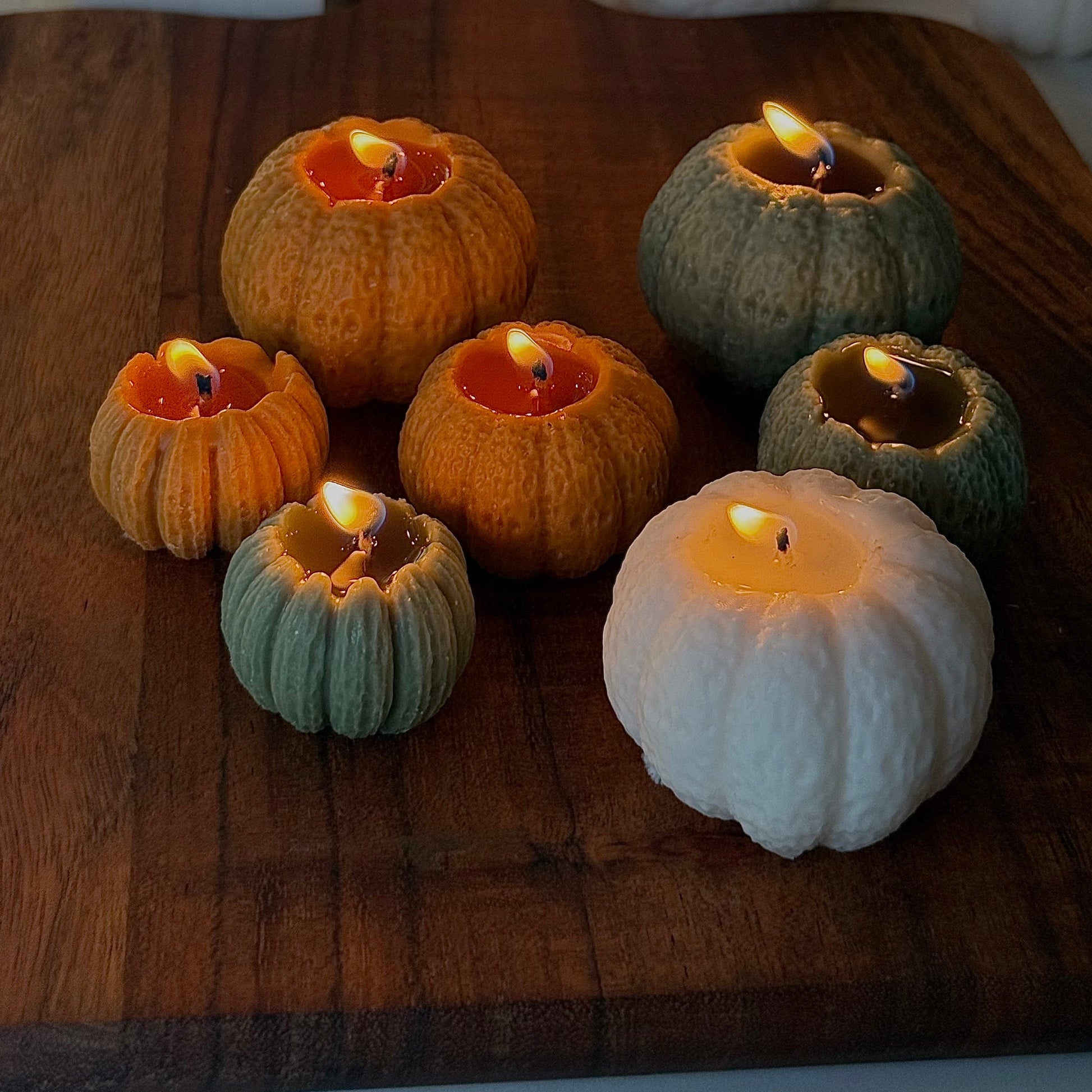 A halloween classic. This set includes 9 pumpkin-shaped candles in a variety of three sizes (small, medium, and large) and three rich, seasonal shades — perfect for creating cozy fall vibes or enhancing your holiday decor.