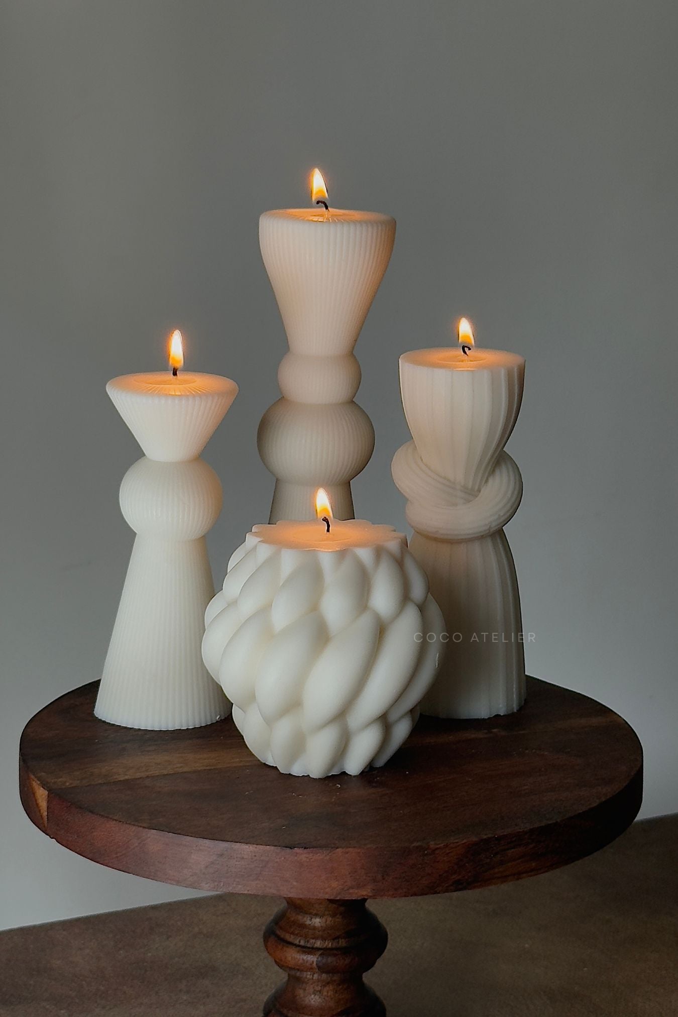 Each candle is made from 100% natural soy wax and hand-poured in our atelier. All of our candles are handmade so they may have slight imperfections and colour variations.