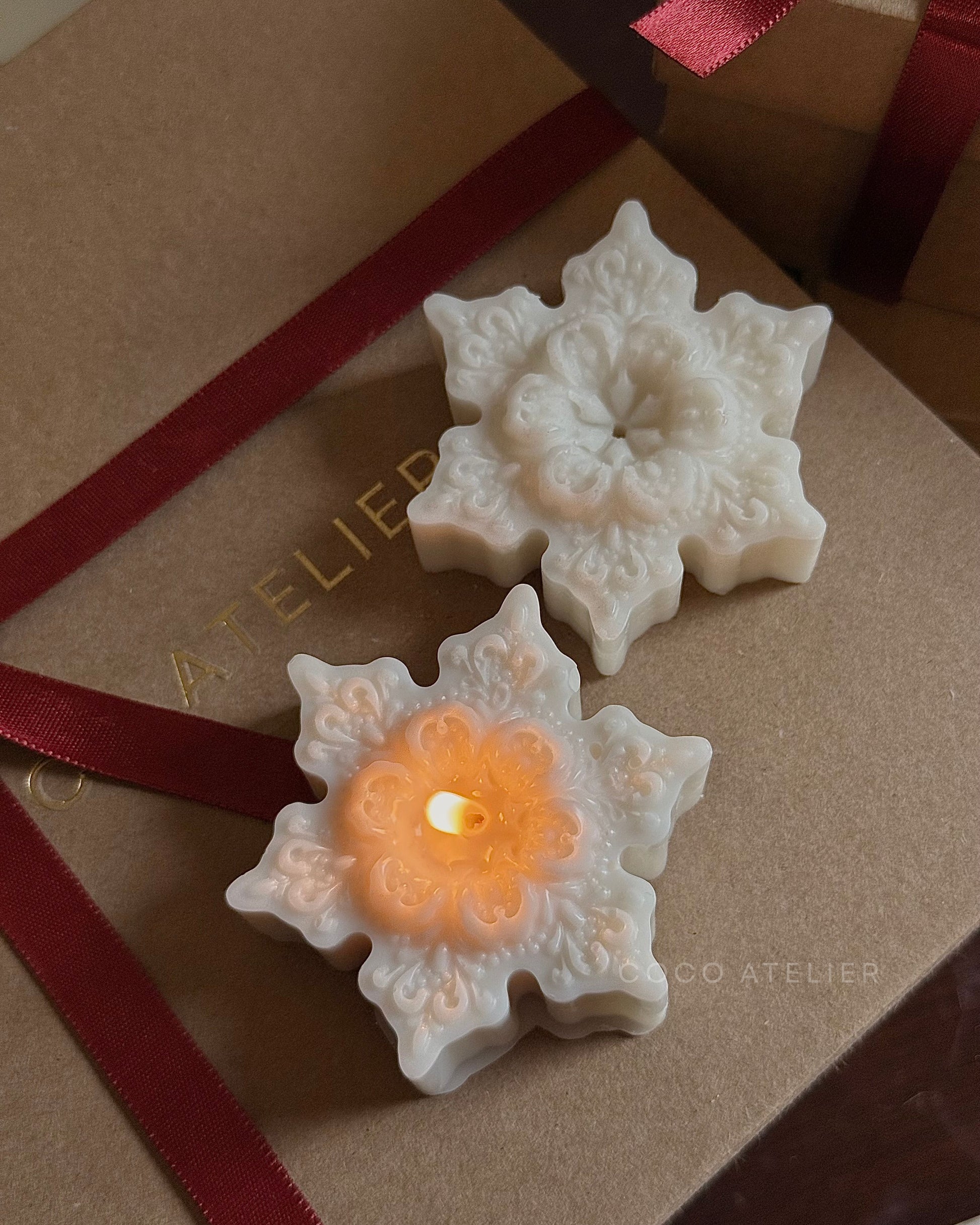 A set of four delicately sculpted snowflakes that seem to dance under the winter moonlight. Each piece captures the magic of falling snow - soft, intricate, and beautifully serene.